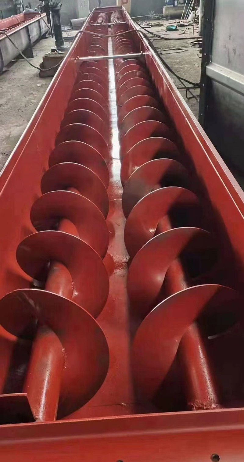 螺旋输送机的螺旋叶片有实体螺旋面、带式螺旋面和叶片螺旋面三种形式。